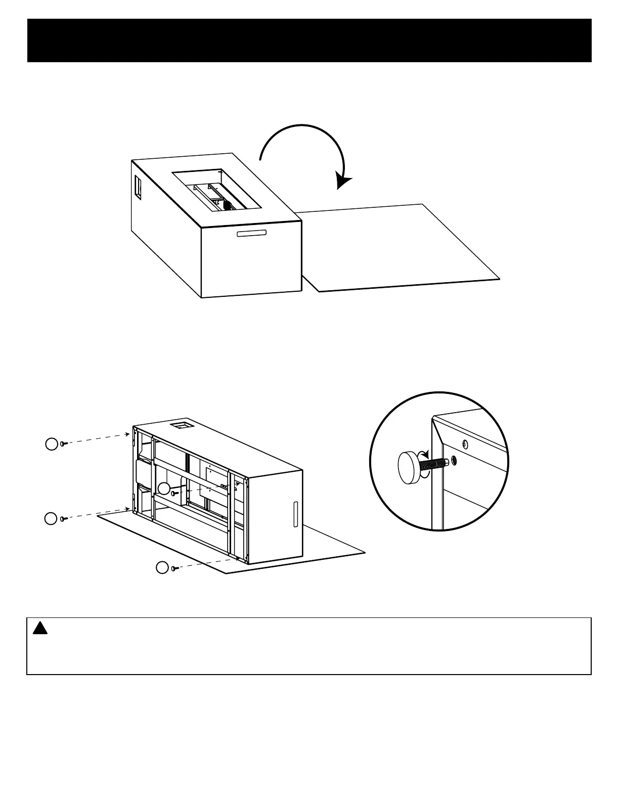 1. Carefully turn the fire table on its side, using a piece of cardboard or a blanket to