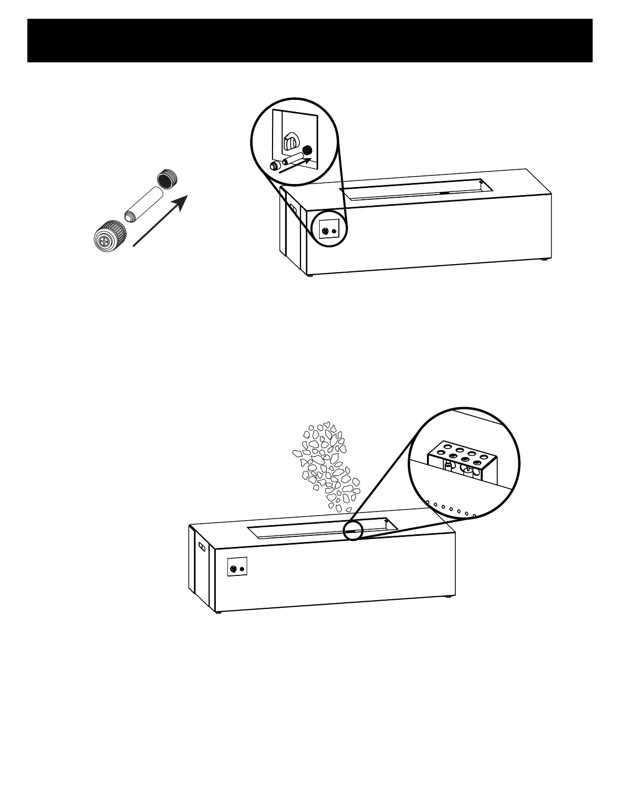 • Do not overfill the burner area with rock or glass filler; use only the specified amount. The