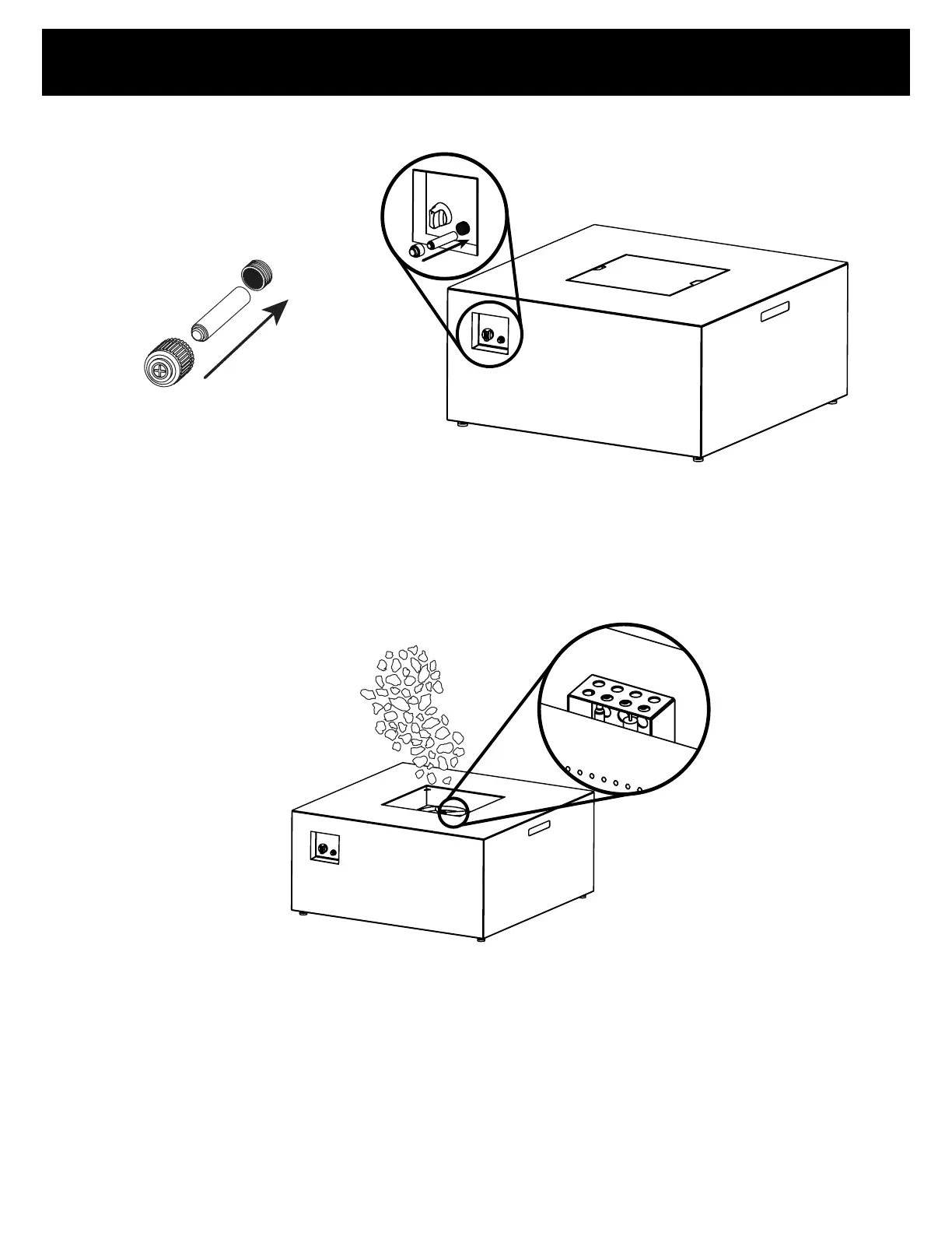 Do not overfill the burner area with rock or glass filler; use only the specified amount. The