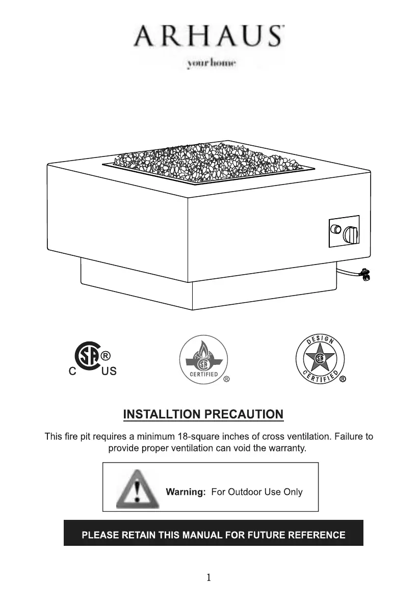 ARHAUS Carson - Specific Model Assembly Instructions; 29 SQUARE CONCRETE FIRE PIT ASSEMBLY