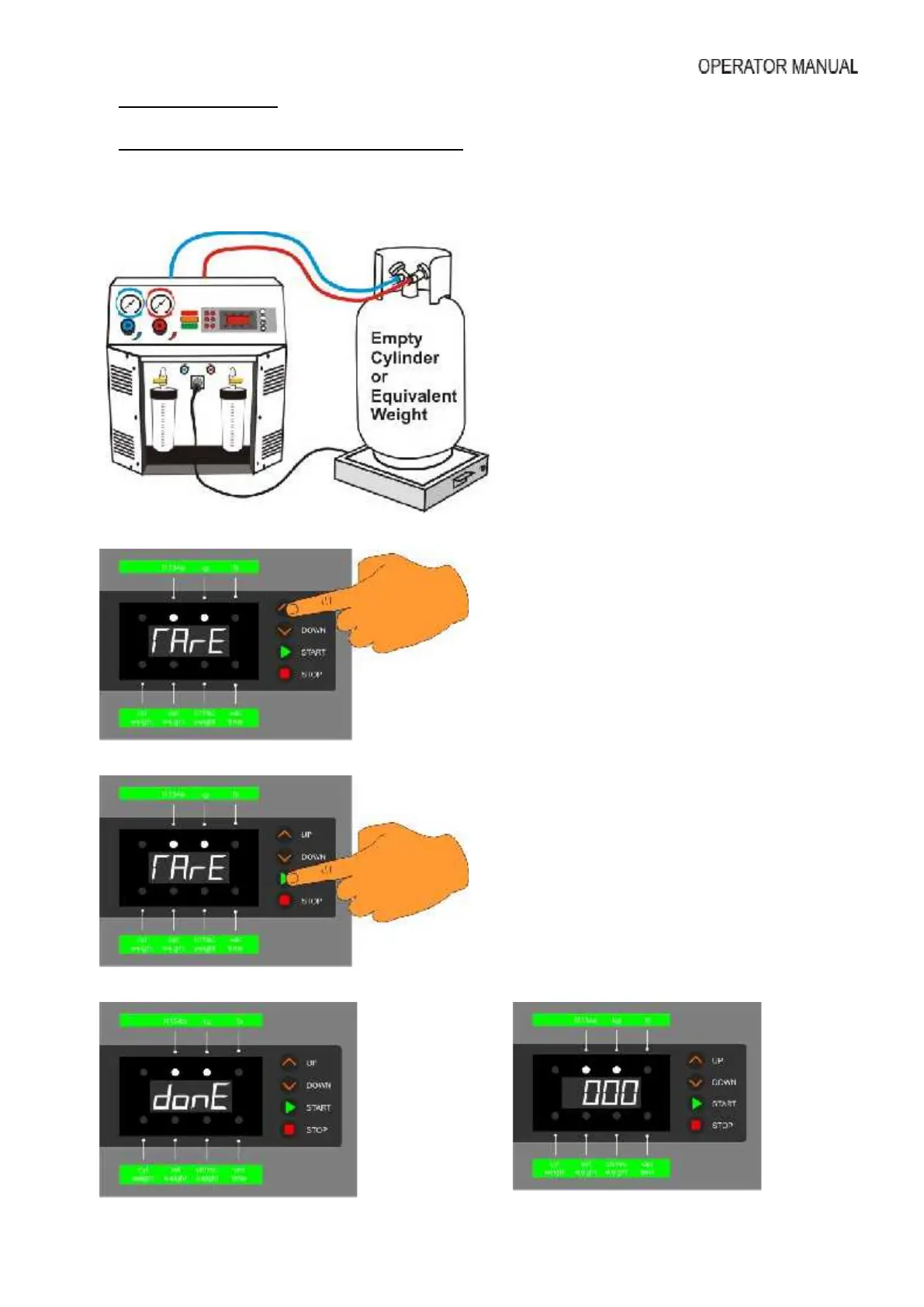 Step 1 – Tare (Calibrating the zero weight display 0.00kg with the empty cylinder on platform)
