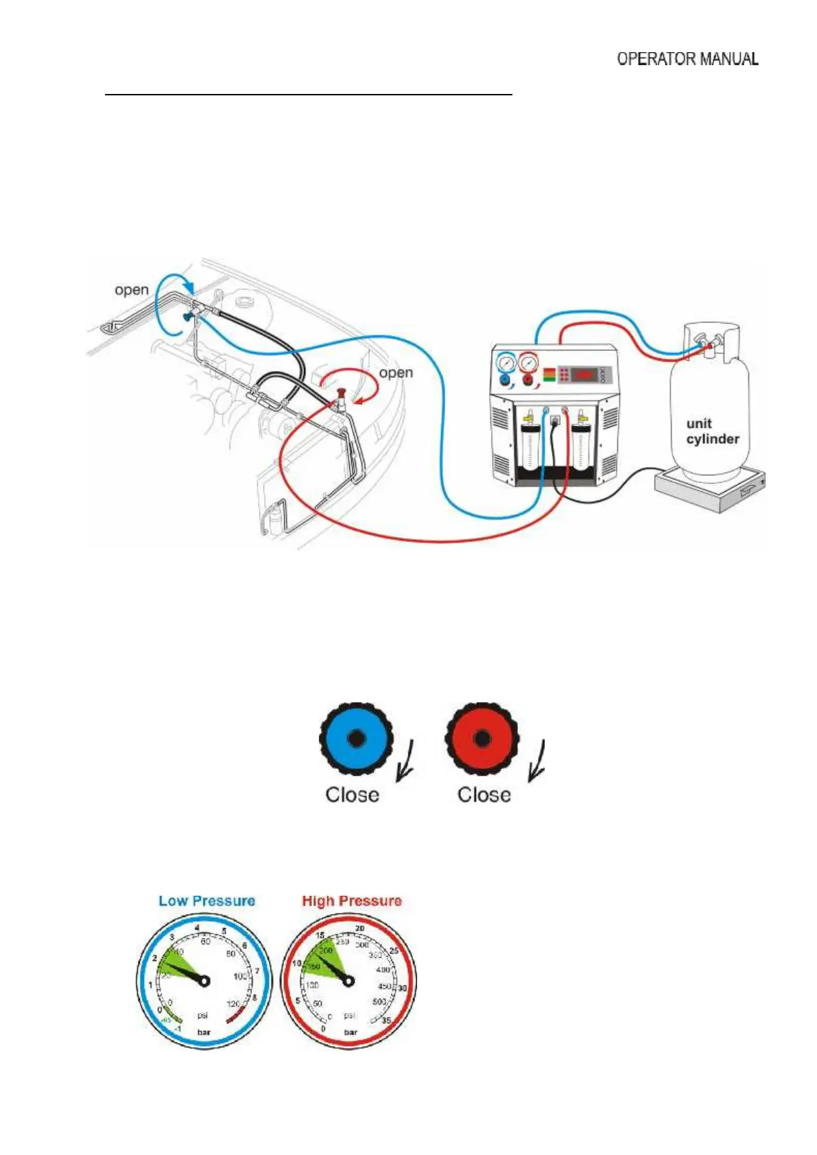 hoses. Turning hand wheel in opposite direction, the flow will be closed. If there is any refrigerant