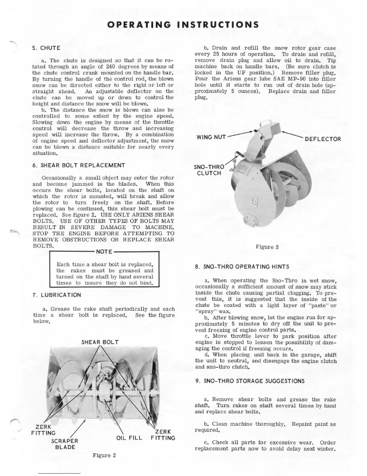 Ariens 10995 - Chute and Deflector Control; Shear Bolt Replacement; Lubrication and Maintenance; Operating and Storage Hints