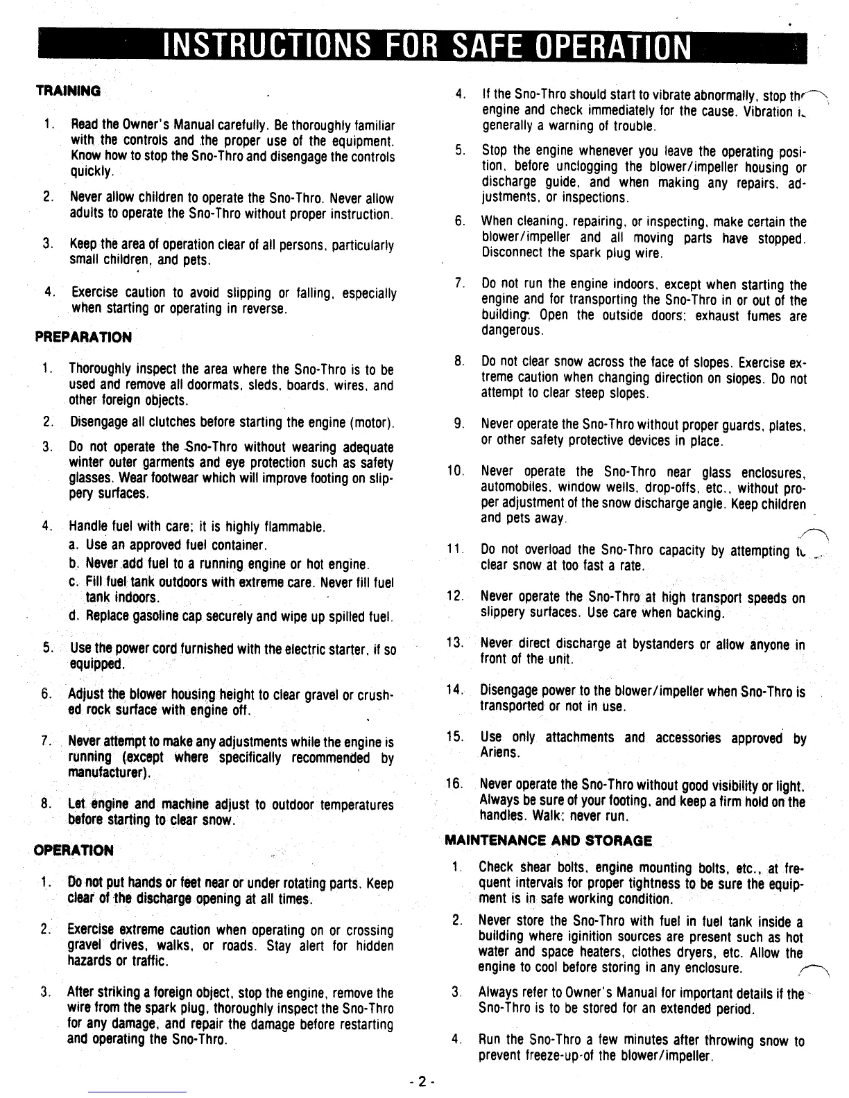 Ariens 832003 - Instructions for Safe Operation; Training; Preparation; Operation