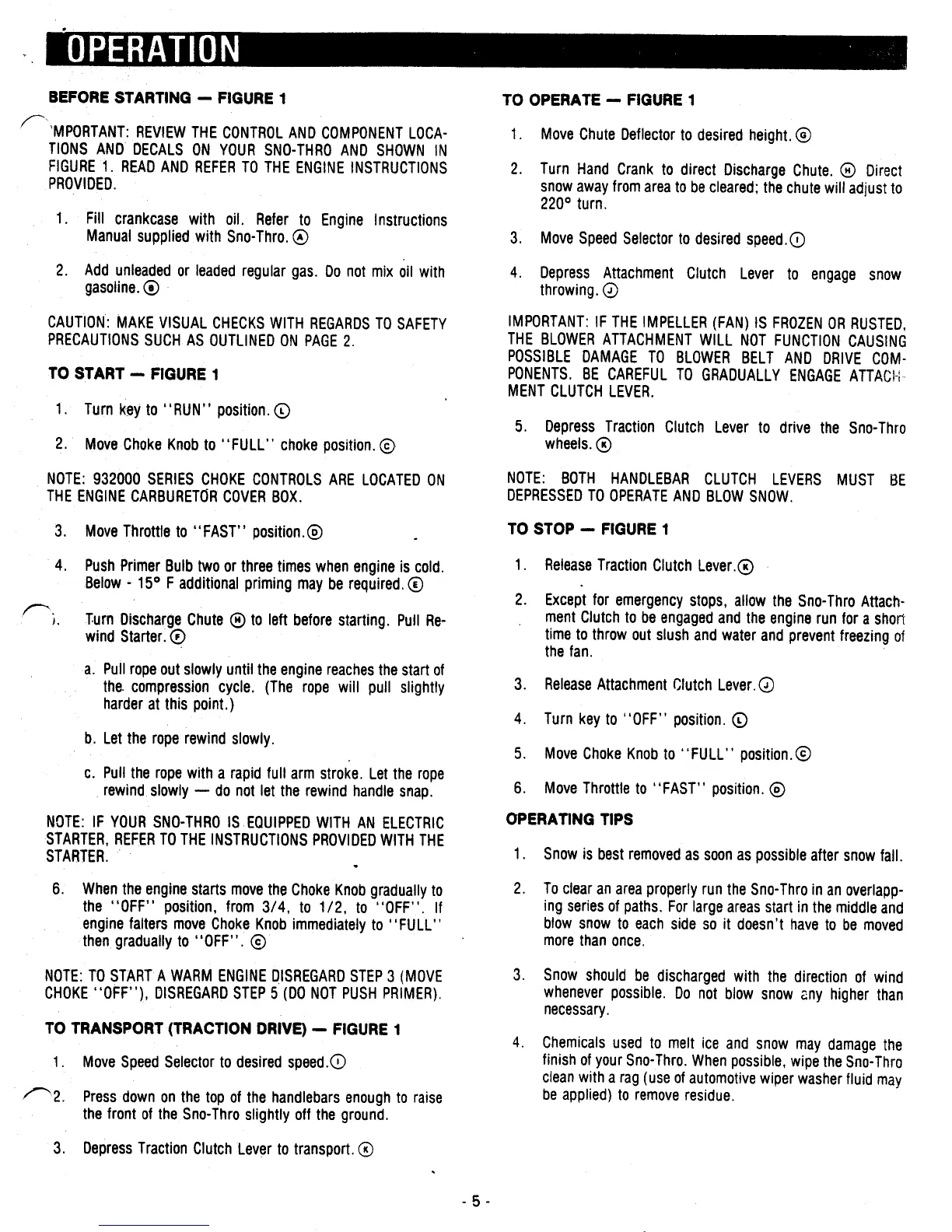 Ariens 832003 - Before Starting; To Start; To Transport (Traction Drive); To Operate