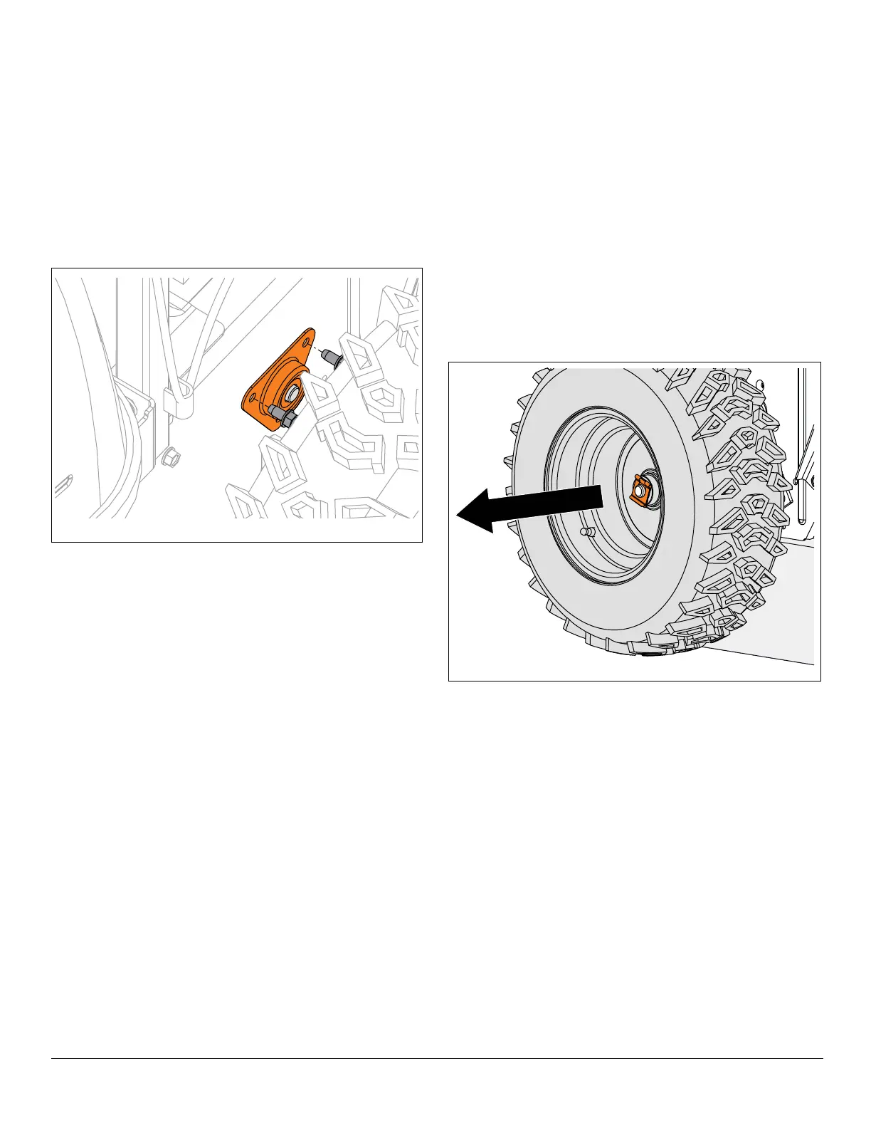 6. Remove snap clip from axle ends and remove wheels.