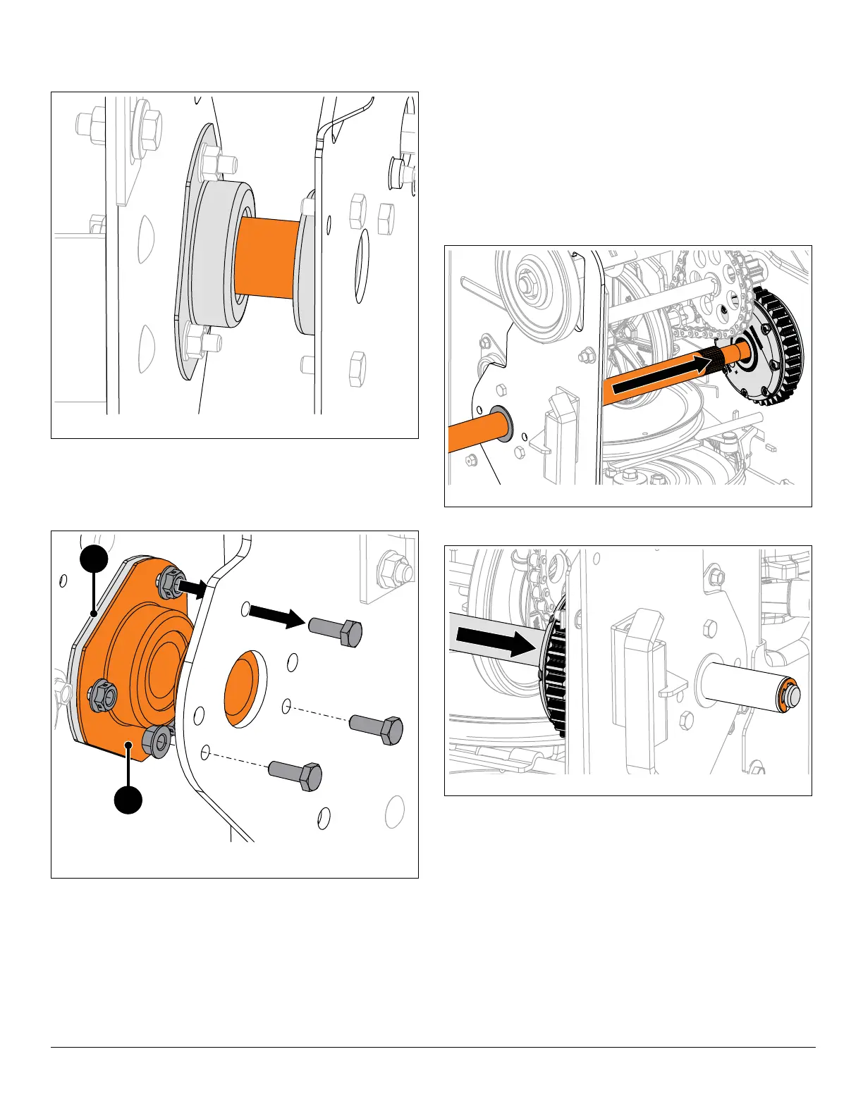 7. Reinstall track drive wheels. See Install Track Drive