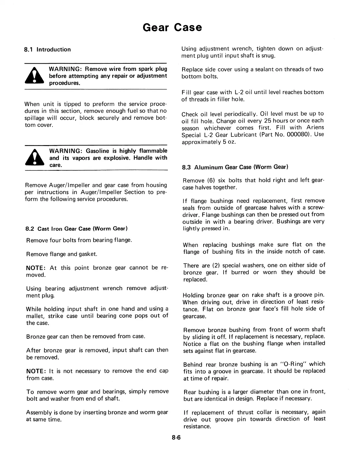 Ariens 924 - Gear Case; Worm Gear Cases