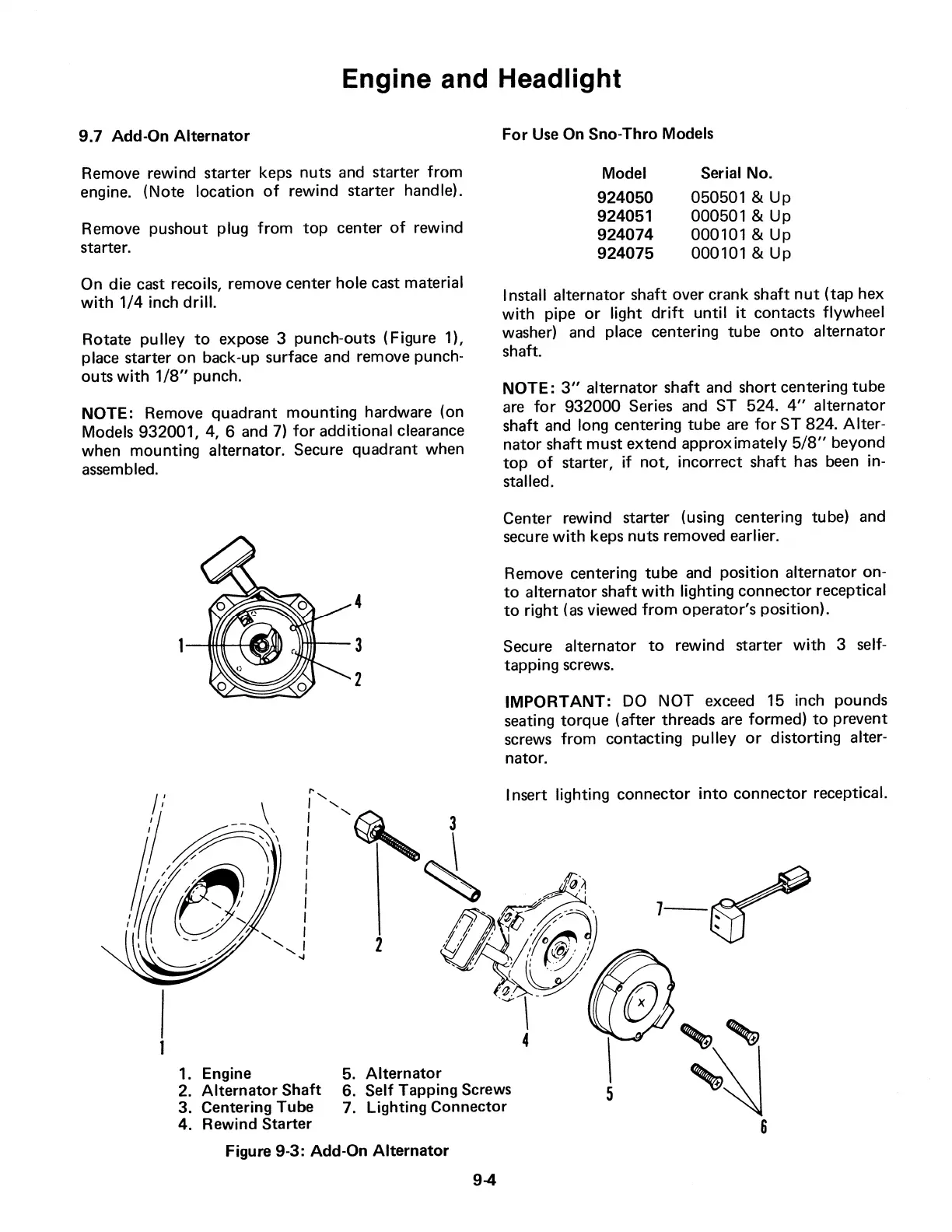Ariens 924 - Add-On Alternator; For Use on Sno-Thro Models