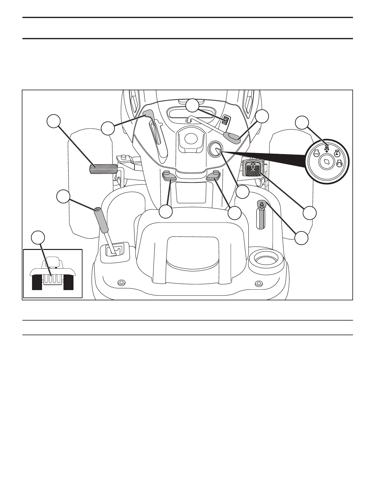 Compare the illustrations with your tractor to familiarize yourself with the locations of various controls and ad just ments.