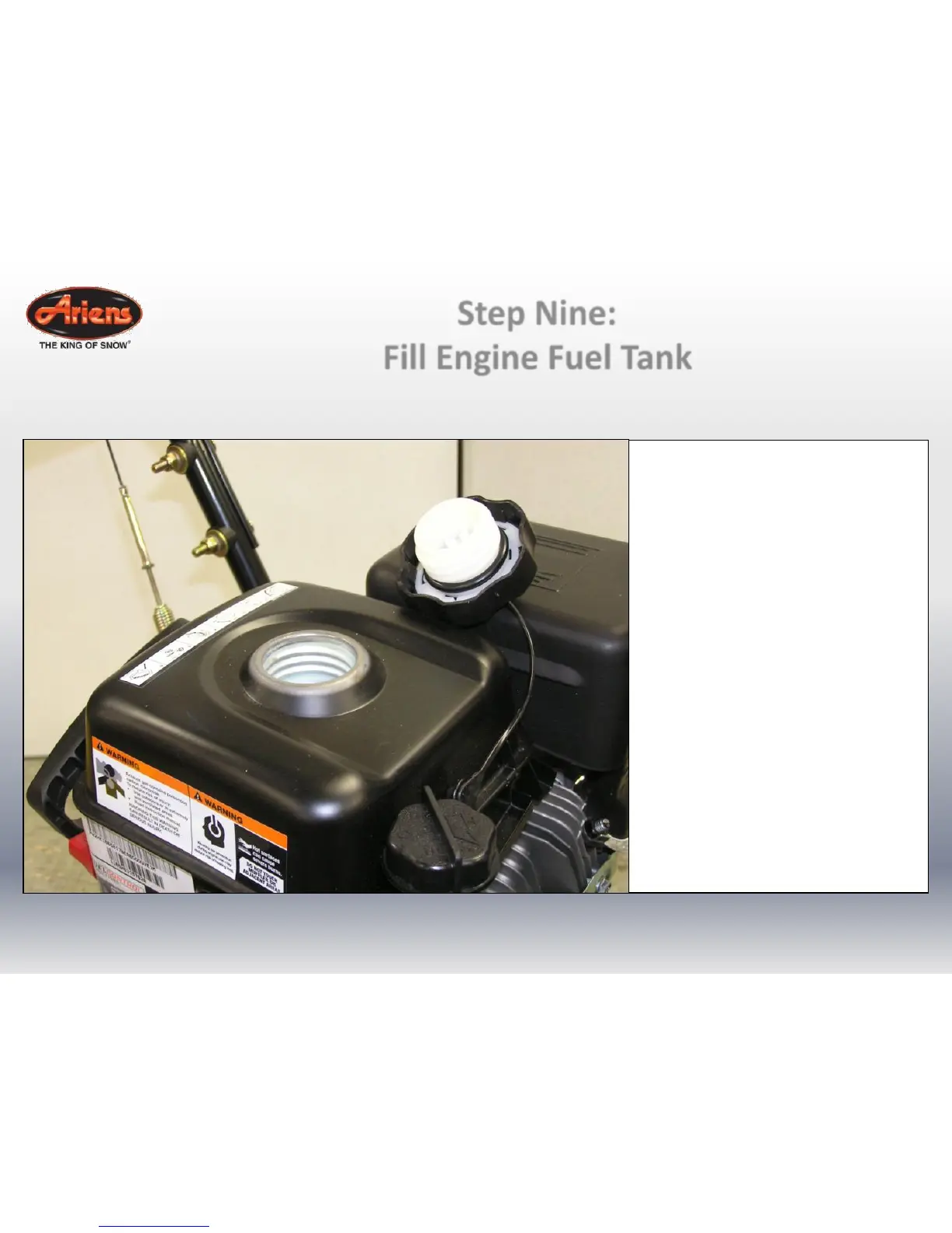 Fill fuel tank. DO NOT