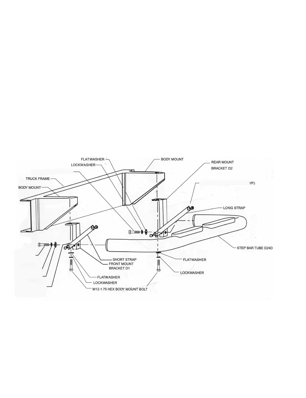 body mounts using one 12mm x 120mm bolt, one 12mm