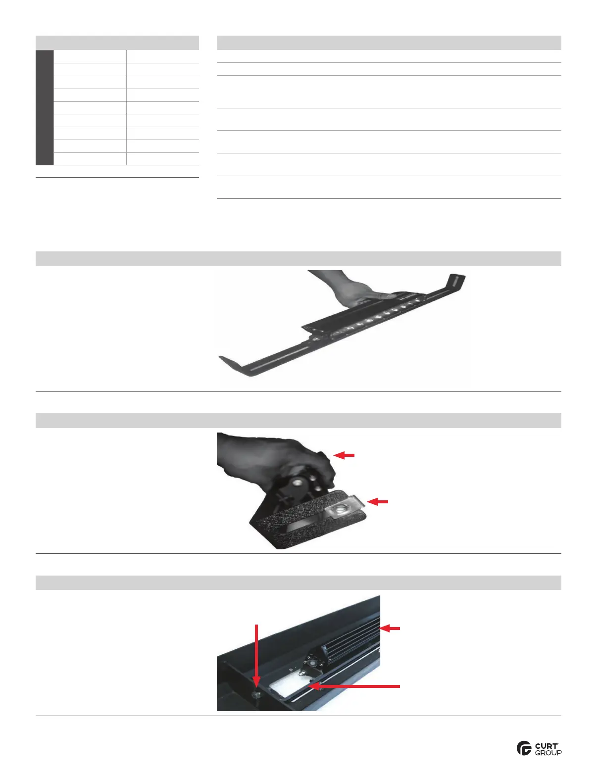 Refer to the table to the left when securing hardware during the