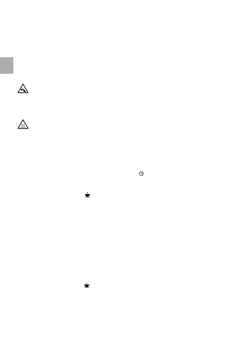 8 Saisir la verseuse par la poignée. Incliner légèrement la verseuse et verser le café chaud dans