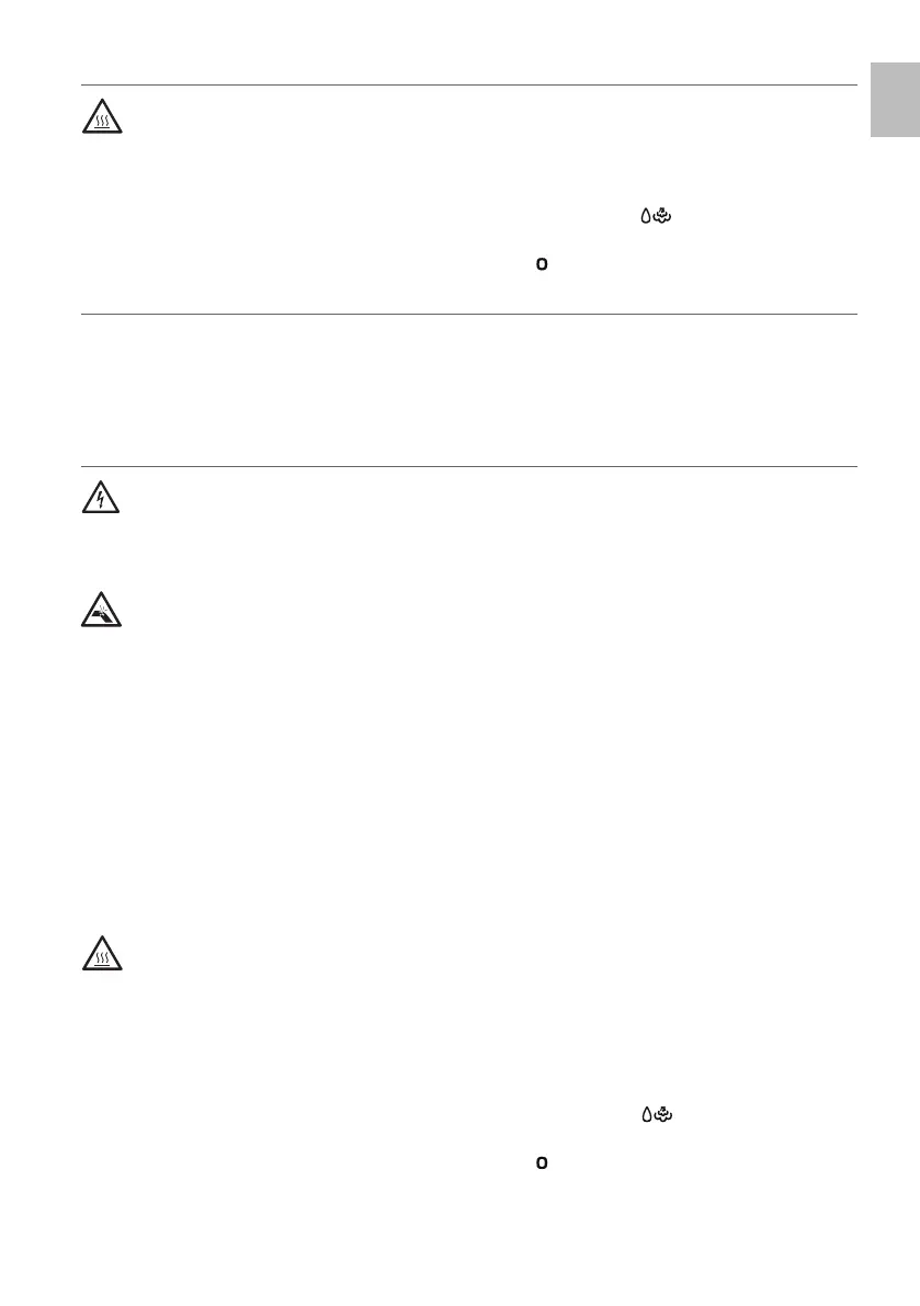 Danger of burns. Only touch the steam/hot water wand on the rubber part. Do not touch the steel tube.