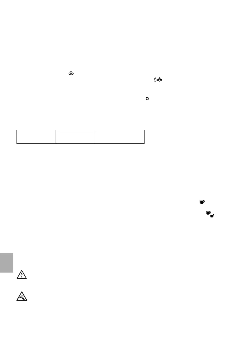 BEMÆRK: indstilling af mængden af vandudløb for 1 kop eller 2 kopper skal udføres under kaffeud-