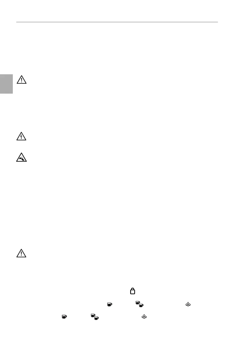 Stromschlaggefahr. Bevor Sie den Wasserbehälter mit Wasser auffüllen, das Gerät ausschalten und