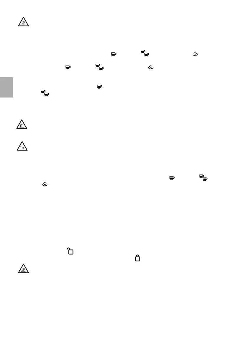 Verbrennungsgefahr durch das Herunterfallen der Tasse während der Ausgabe. Prüfen Sie, ob die