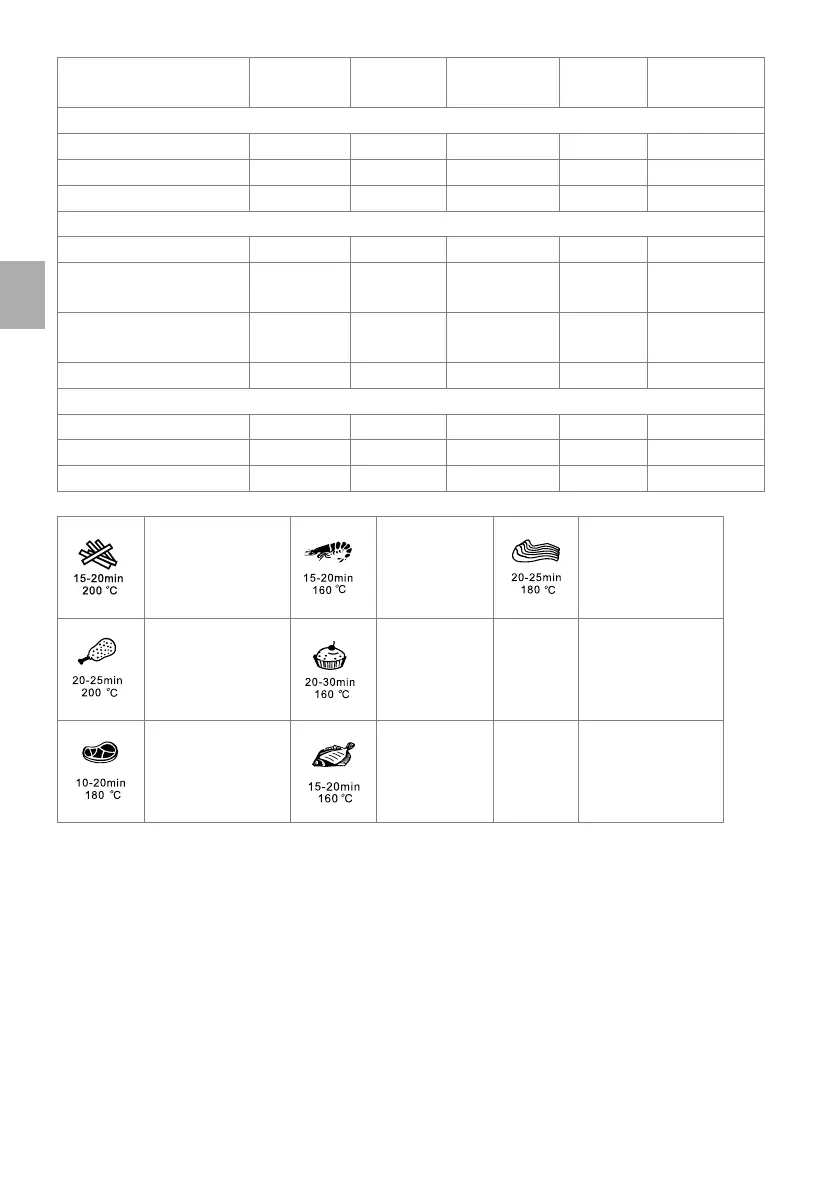 Unter jedem Symbol ist die für jede Lebensmittel empfohlene Zeit Angegeben. Die Kochzeit ist