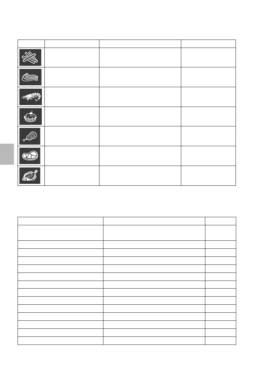 De volgende tabel toont de vooringestelde programma's die op het bedieningspaneel aanwezig