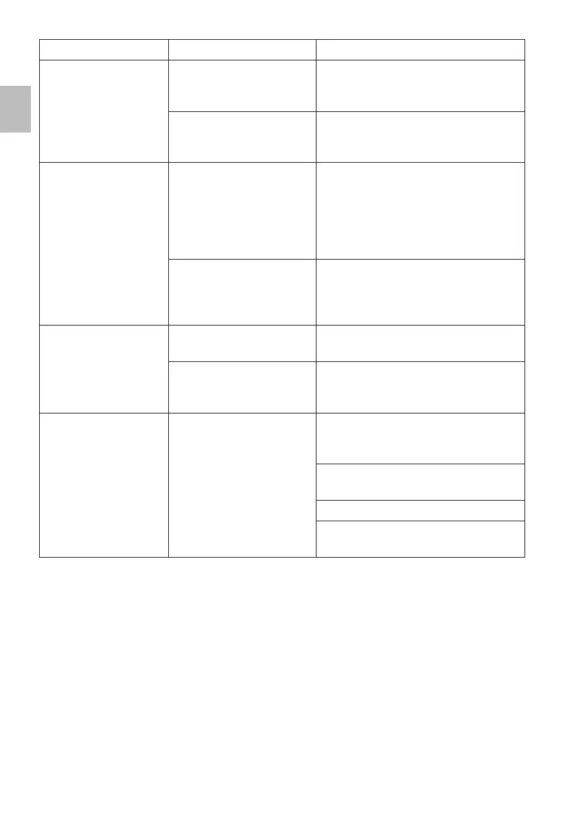 Problems Possible causes Solutions