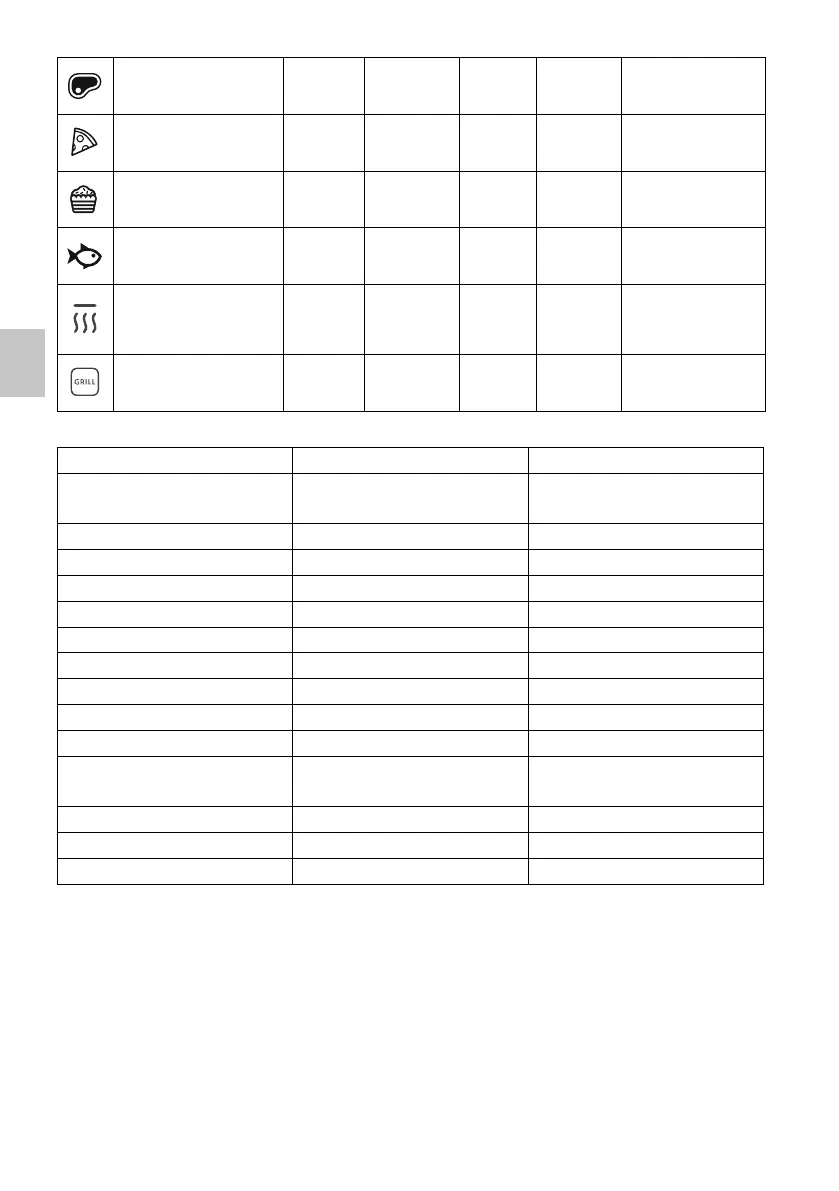 La tabla siguiente muestra los tiempos y temperaturas indicatiYos para Yarios tipos de alimentos