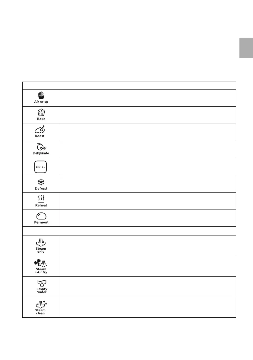 STEAM + AIR FRY PRE-SET COOKING PROGRAMS