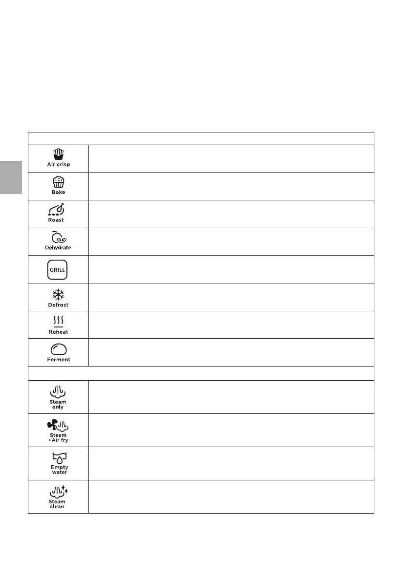 PROGRAMAS DE COCCIÓN PREESTABLECIDOS STEAM+AIR FRY