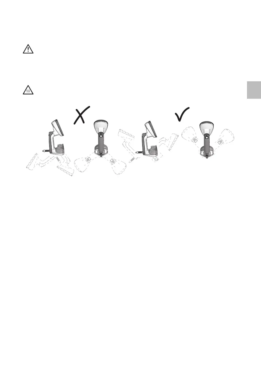 oben und umgekehrt. Verwenden Sie das Gerät nicht in auf den Kopf gestellter Position, mit