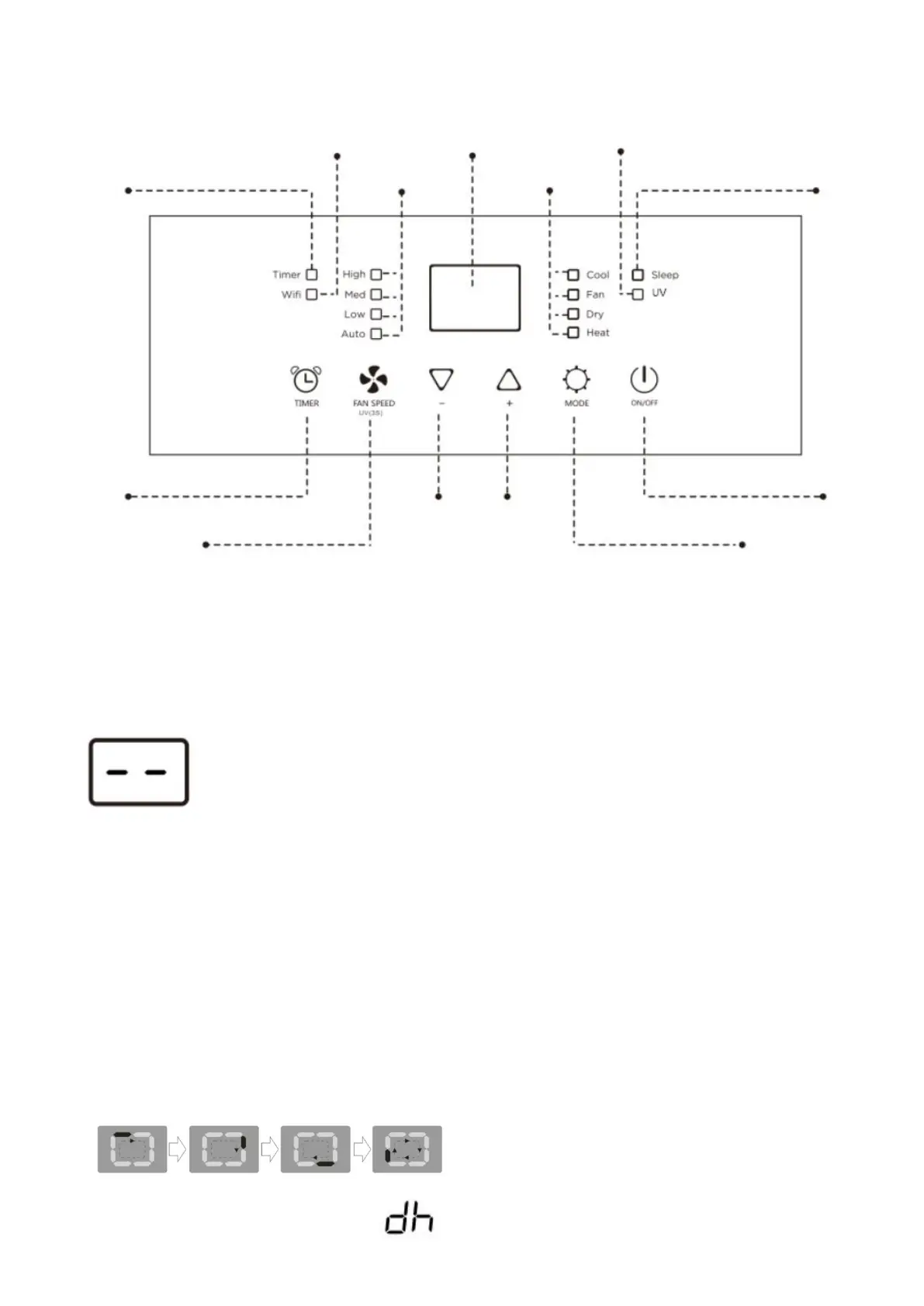 NOTE: SMART and DRY mode the LED screen indicates the below.