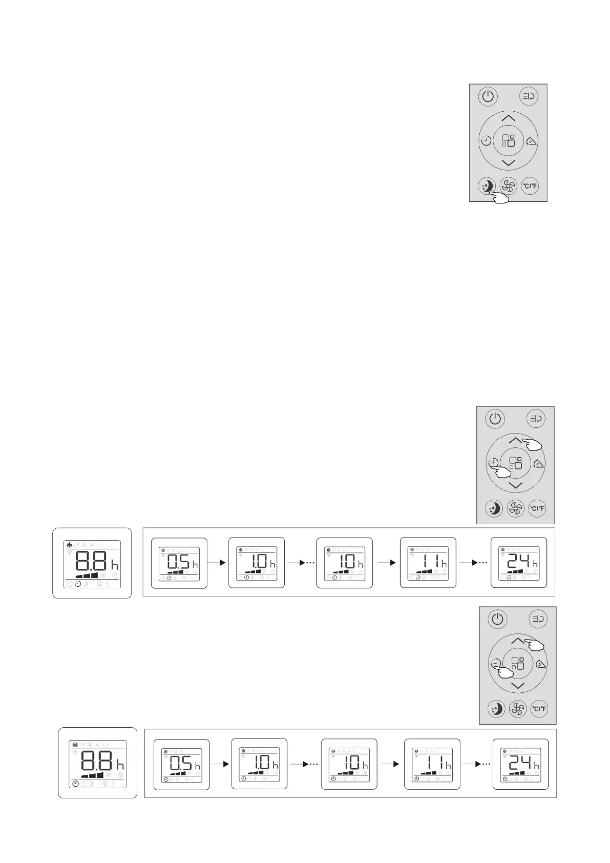 or “Decrease button” to set the length of time before the AC will turn off.