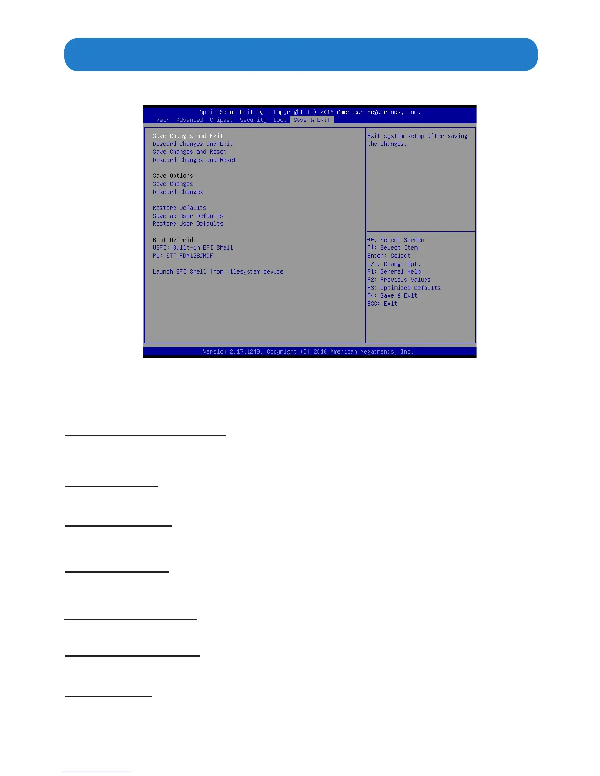 The Save & Exit Menu allows you to save the changes that you have made in the Setup