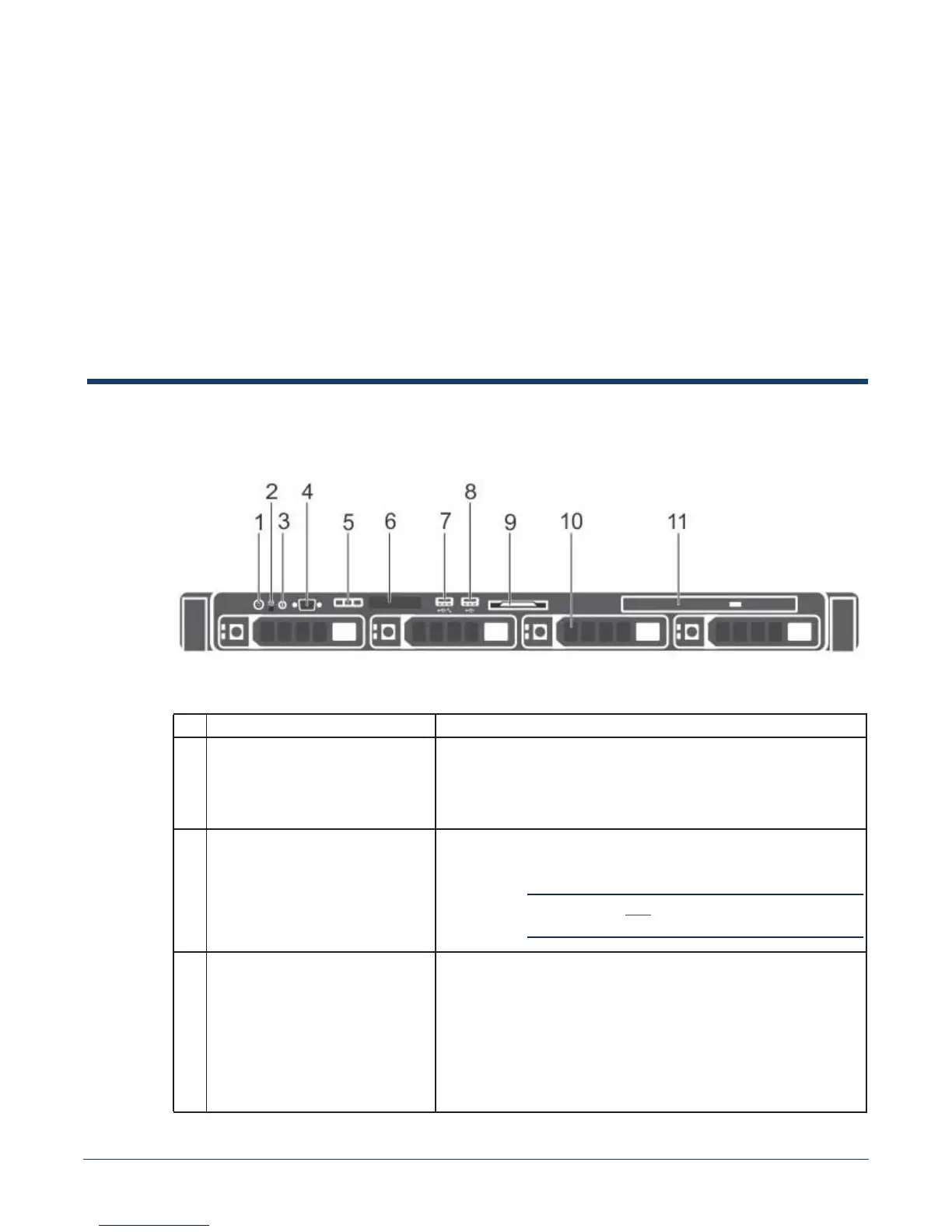1 Power-on indicator, power button The power-on indicator lights when the system power is on. The