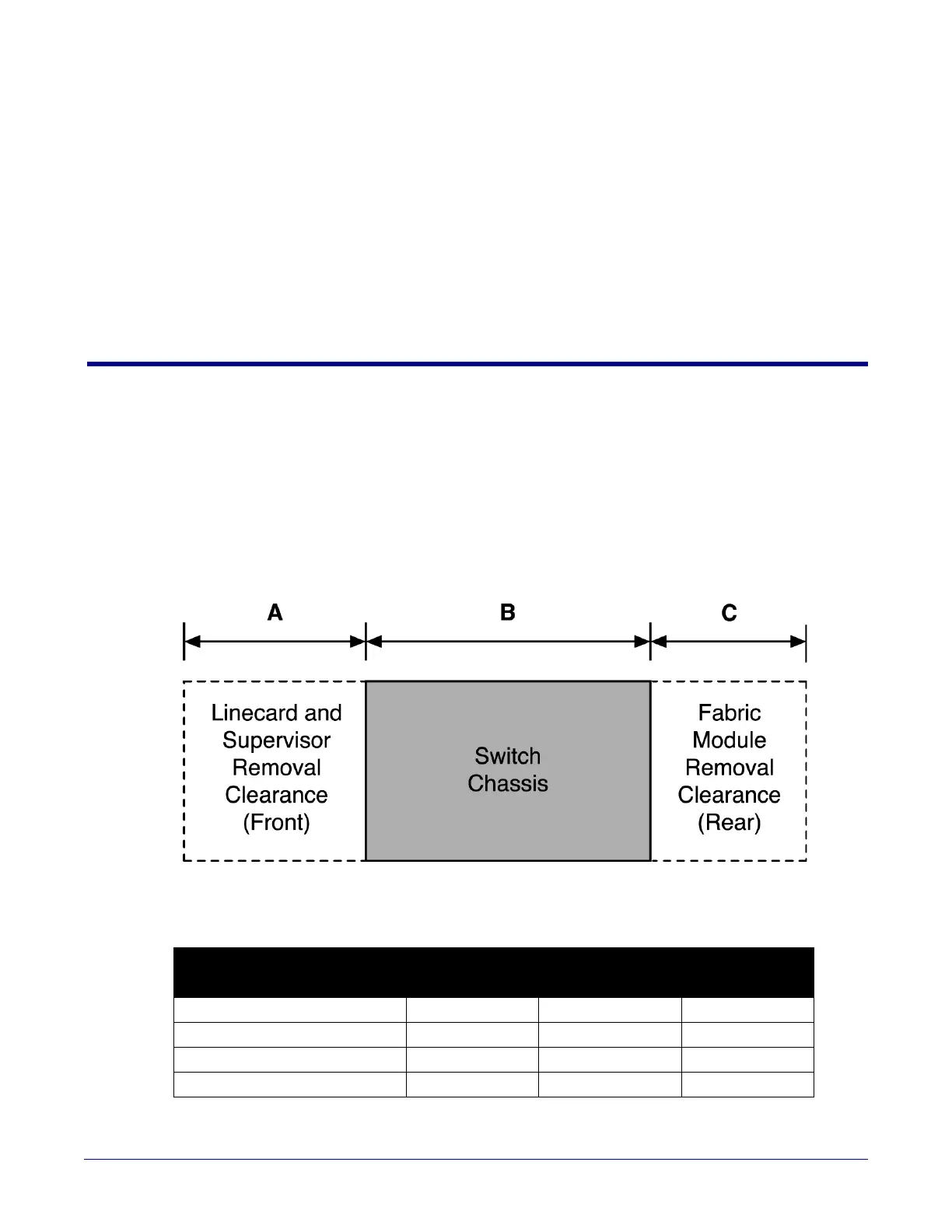 Figure 2-1 displays the dimensions and footprint of the switch clearance requirements for the