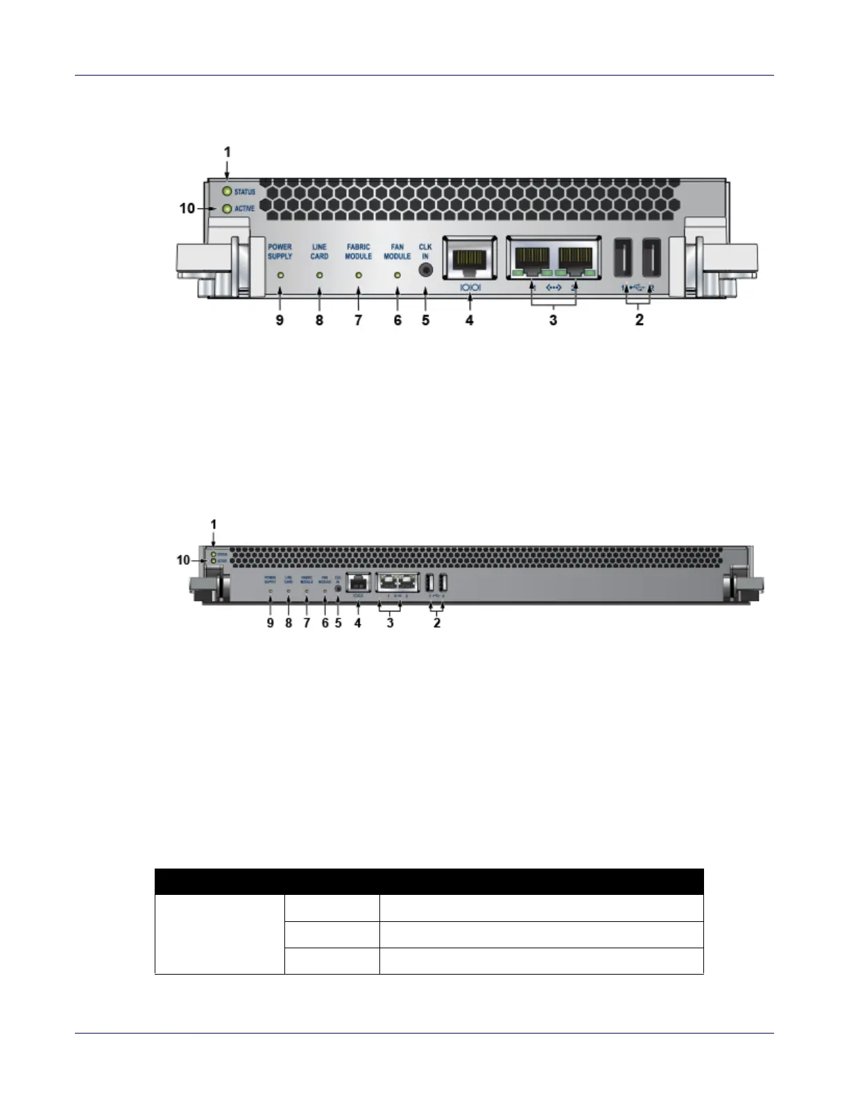 The Status and Active LEDs are located on the left side of the Supervisor Module. Table A-1 interprets
