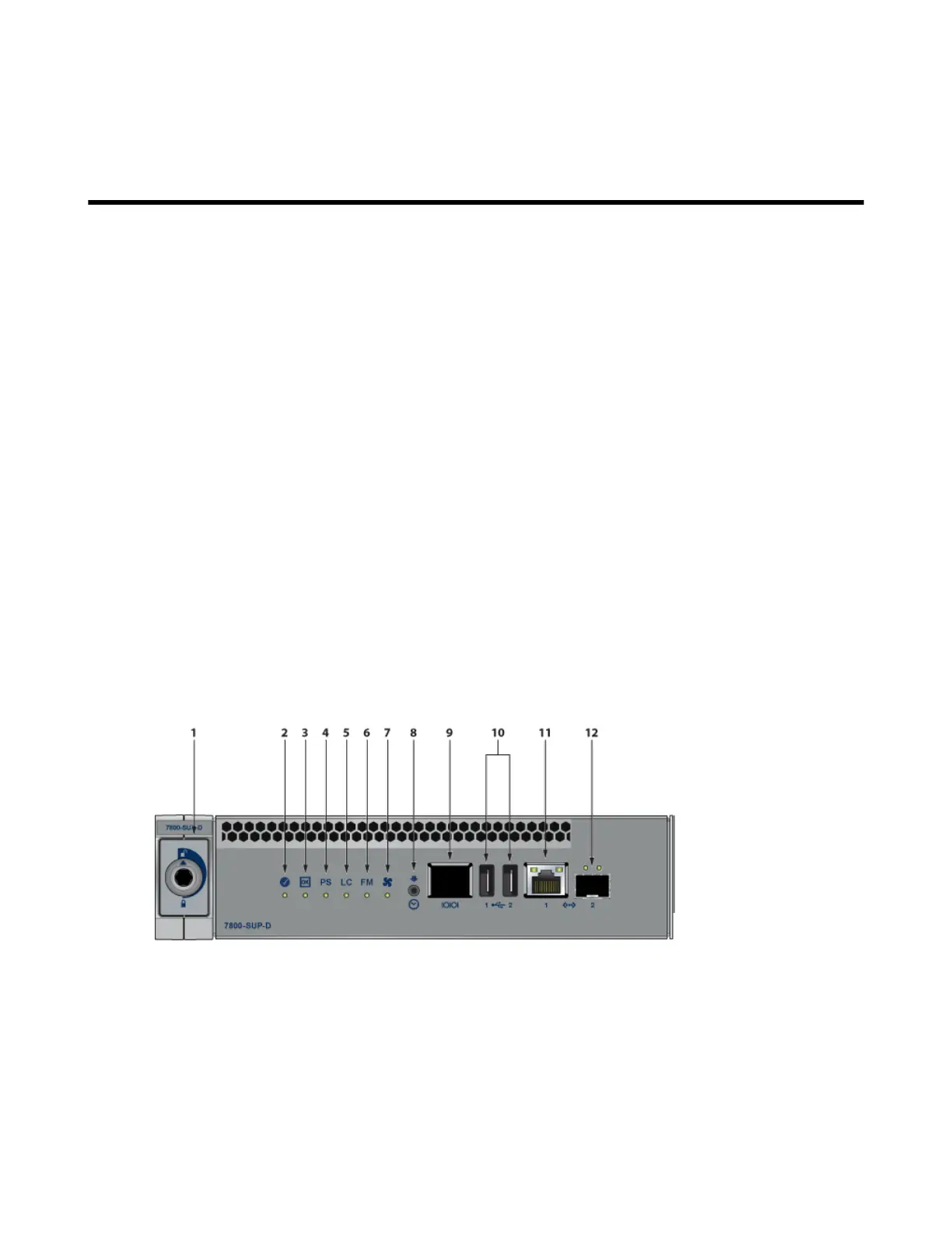• Several system level status indicator LEDs (System Level Status Indicator LEDs: DCS-7800-SUP-D).