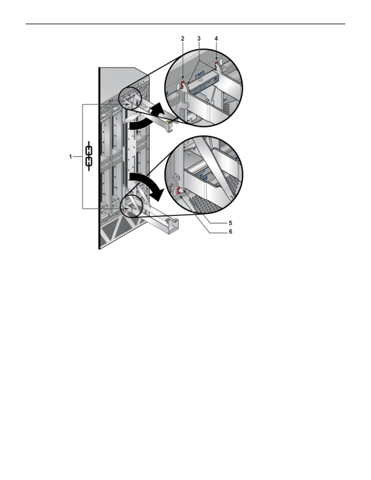 1 Fabric module ejector levers 3 Fabric module seating claws 5 Fabric module seating claw