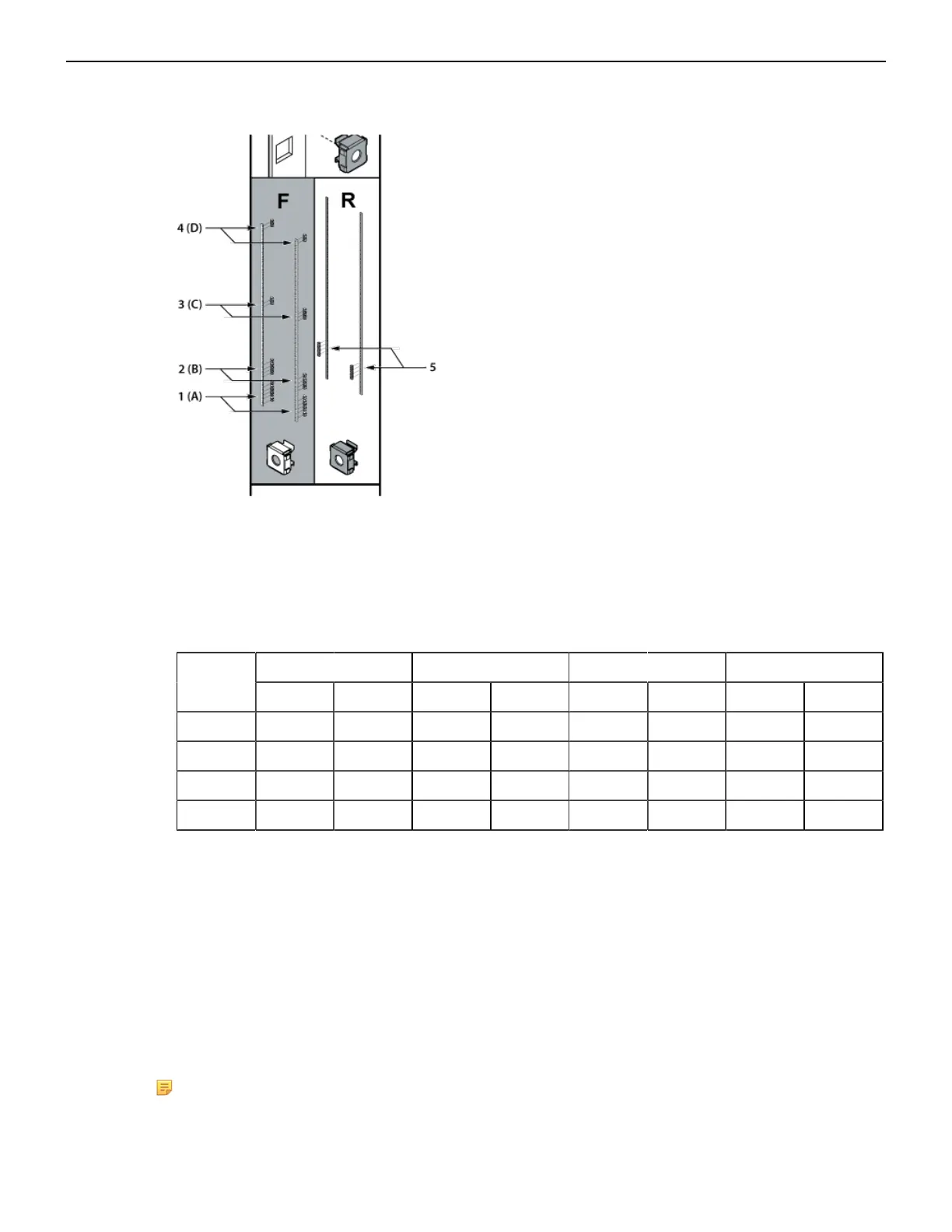 1 Mounting location A Front (Left and Right) 4 Mounting location D Front (Left and Right)