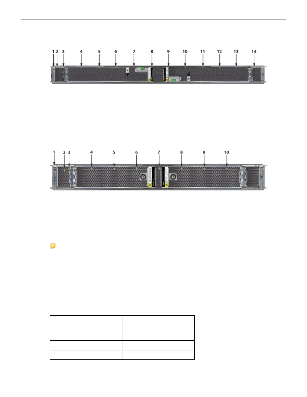 4 Fan module 2 status LED 9 Fabric module ejector lever 14 Fan module 11 status LED