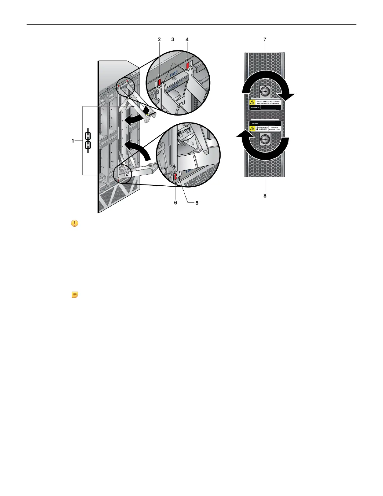 1 Fabric module ejector levers 4 Claw position on chassis 7 Screw