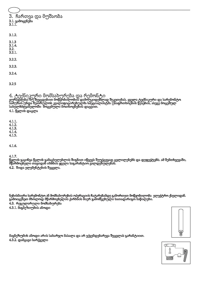 3.1.2. როგორც კი წყალგამაცხელებლი აივსება, შემრევიდან წამოვა წყალი. შეამოწმეთ მილტუჩი გადენის