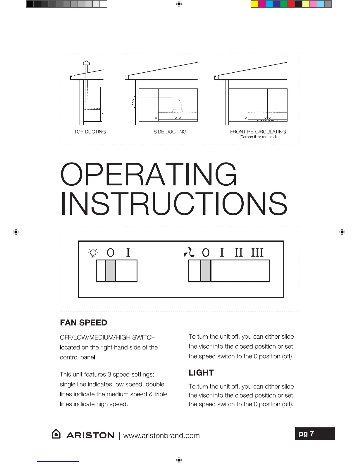 Ariston ARH9SIX - Operating Instructions; Fan Speed; Light