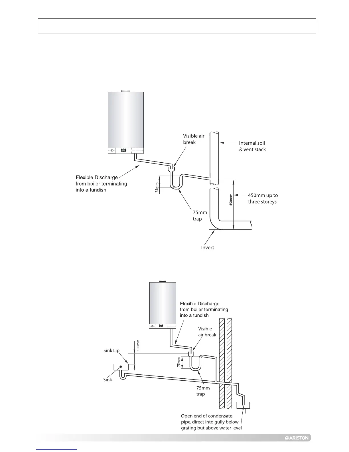 1. Internal termination of condensate drainage pipe to internal stack
