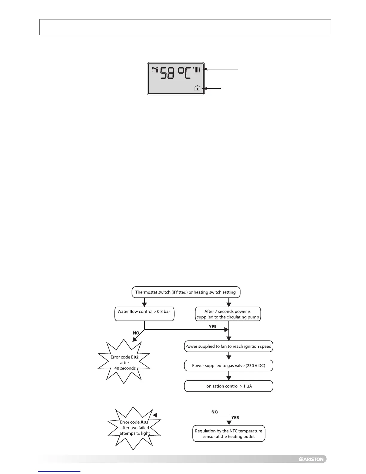 appear on the LCD. Should the boiler detect that the burner has lit, the boiler continues to regulate as follows.