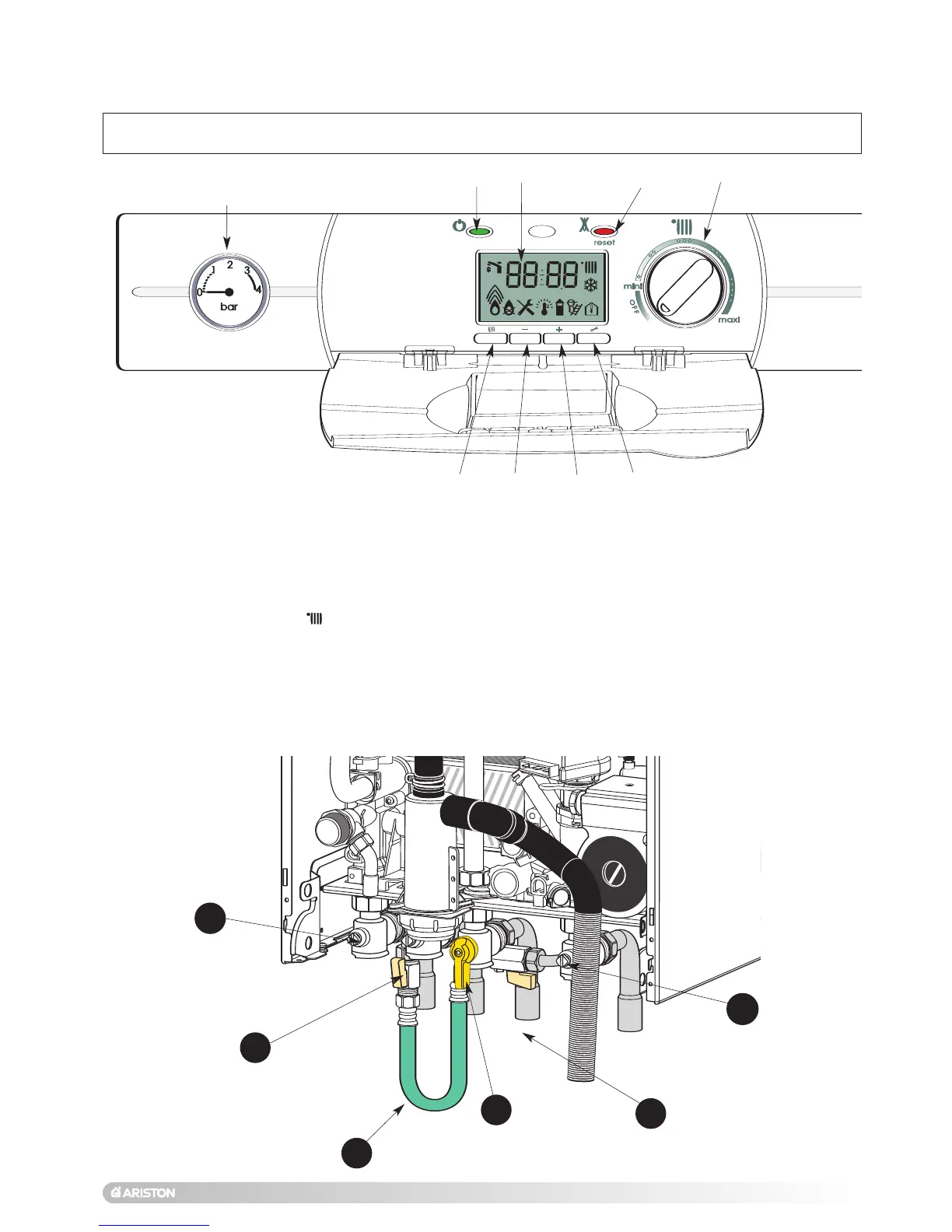 30.- Central Heating control knob and temperature setting