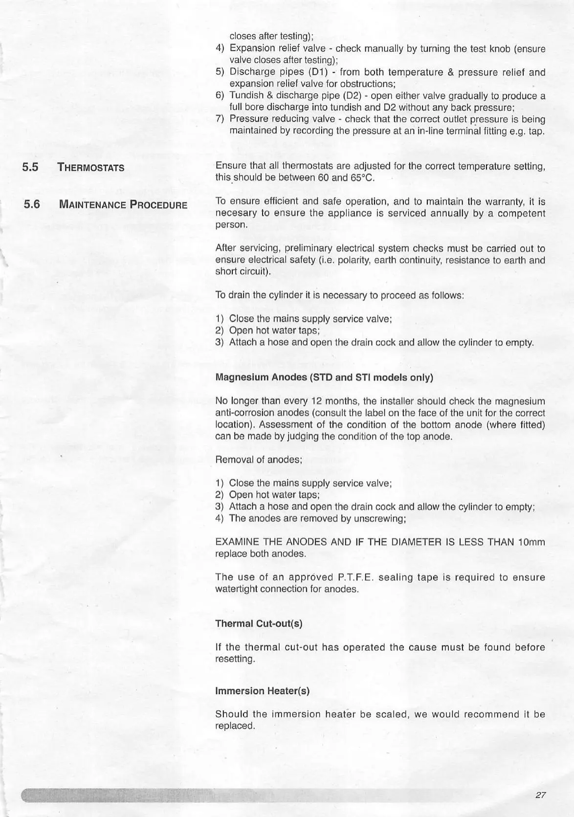 Ariston Classico HE STD 125 - 5.5 Thermostats; 5.6 Maintenance Procedure