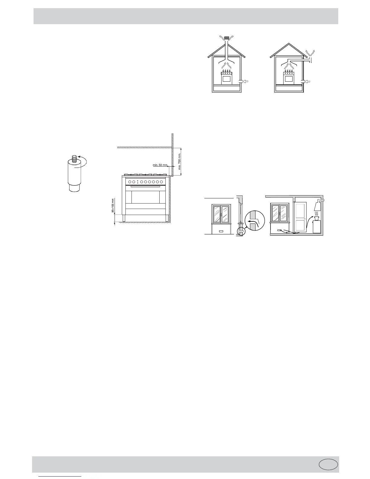 Prior to installing the cooker, 95 ÷ 155 mm high supporting