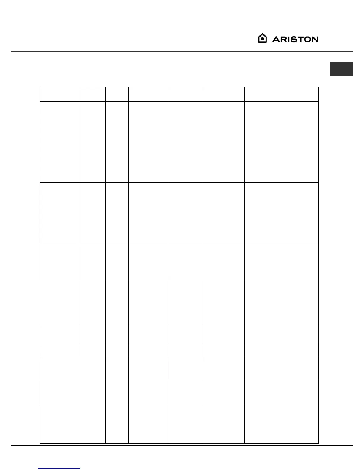 Main Oven - Fan grilling roasting chart