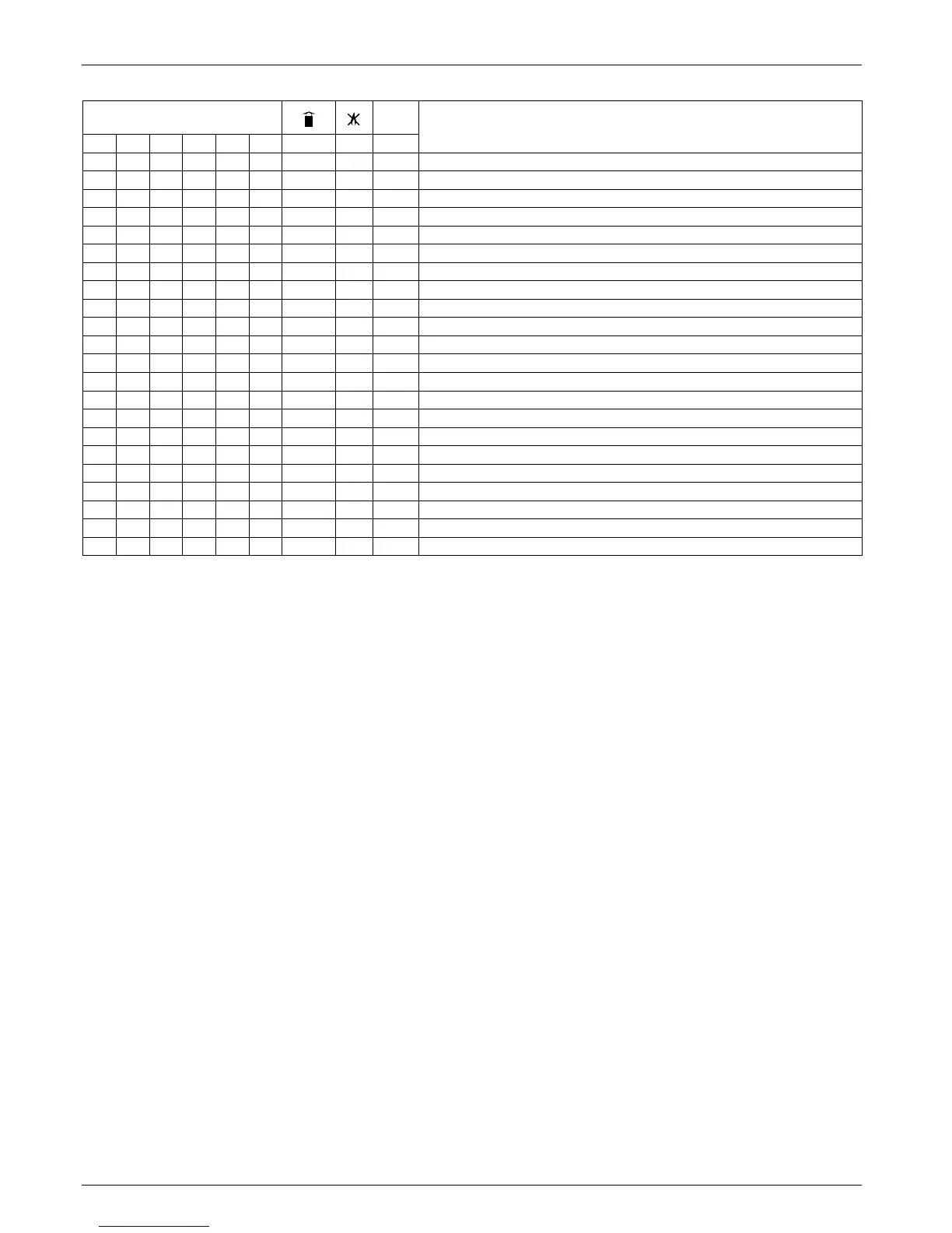 Table summarising error codes