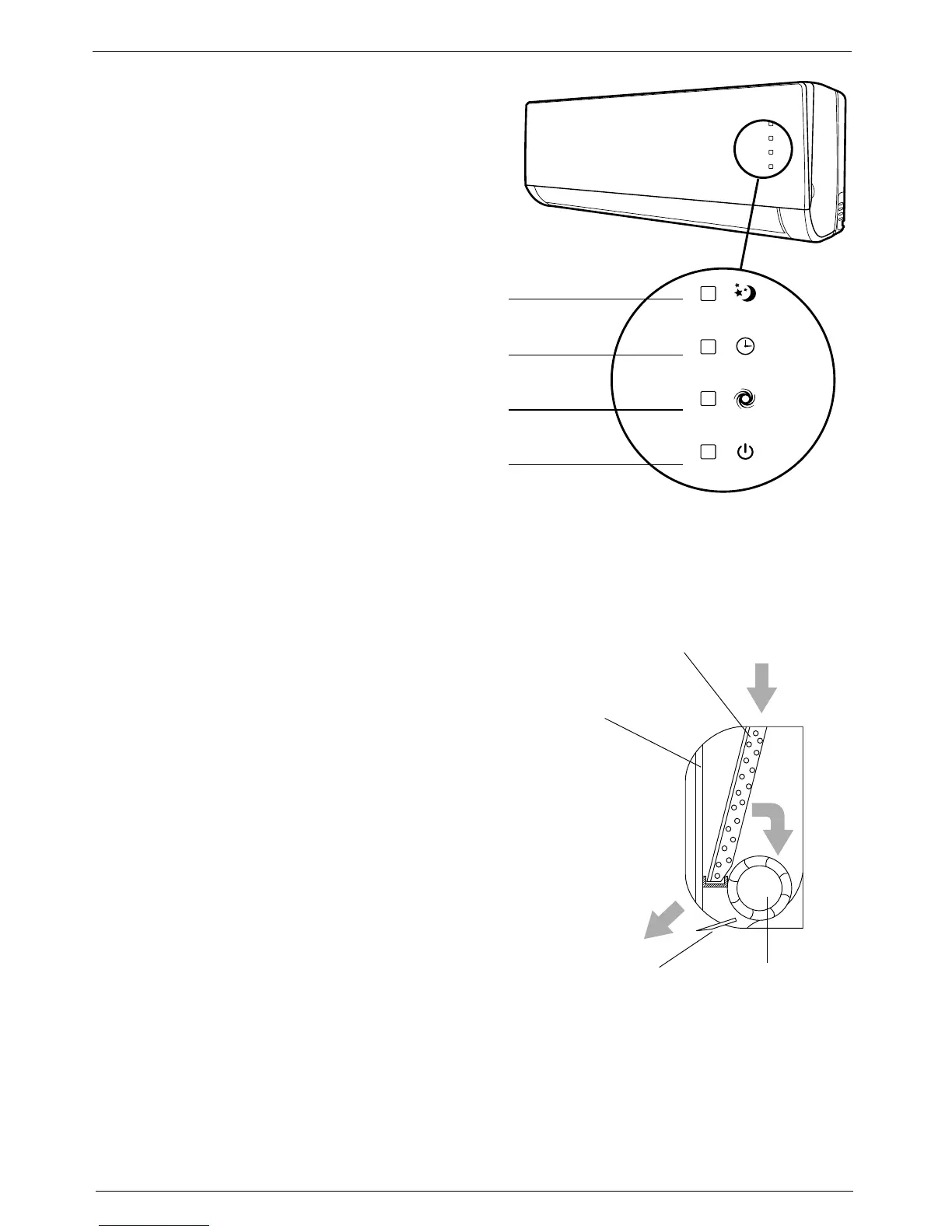 De airconditioner beschikt over leds waarmee u de bedrijfspa-
